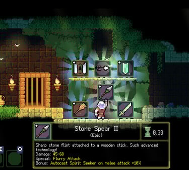 Coincidente con su género (y que lo diferencia de los roguelike), en Dunjungle varias de las habilidades que consigamos en el hub central quedarán de forma permanente. Aunque las que consigamos en cada run se perderán al iniciar una nueva. Así como también los escenarios serán creados aleatoriamente al momento de empezar cada partida.