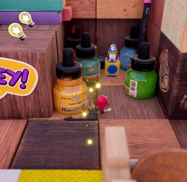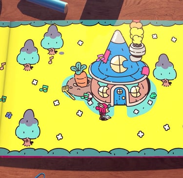 Si bien constantemente salimos hacia el escritorio de Sam, pocas veces son para hacer algo realmente interesante. La mayoría de las veces será para volver a alguna página anterior, a buscar alguna cosa que usaremos en la página en la que estábamos antes, para sortear algún obstáculo. O inclinar las páginas para mover elementos del escenario, u otra cosa que solo podemos hacer en la forma tridimensional. Pero esto solo es una incursión pequeña, de unos pocos segundos, una vez hecho esto volvemos a la bidimensional para seguir.
